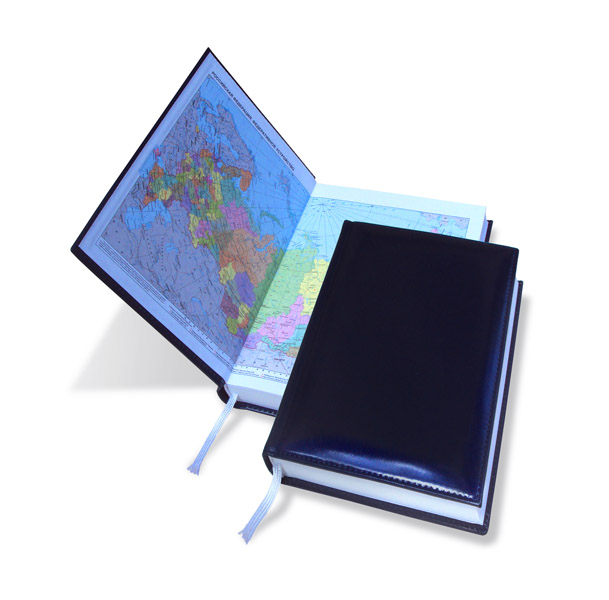 Престижный недатированный ежедневник с обложкой из натуральной кожи, формат А5. Карты России и Европы
