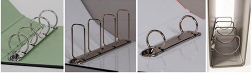 При изготовлении папок на кольцах мы используем импортные кольцевые механизмы различных конструкций и размеров. Наиболее распространены механизмы с двумя кольцами. Они экономичны и, в то же время, просты в обращении, листы для вложения могут быть подготовлены с помощью обычного дырокола. Если же Вы планируете вкладывать в папку тяжелые материалы или образцы продукции, мы установим более надежные механизмы с четырьмя кольцами.