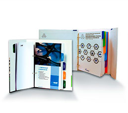 Преимущество каталогов или презентаций, размещенных в папке с кольцевым механизмом, это возможность их быстрого изменения, дополнения, уточнения. Раздвинули кольца, удалили устаревшие разделы и добавили новые. И не нужно перепечатывать весь документ!