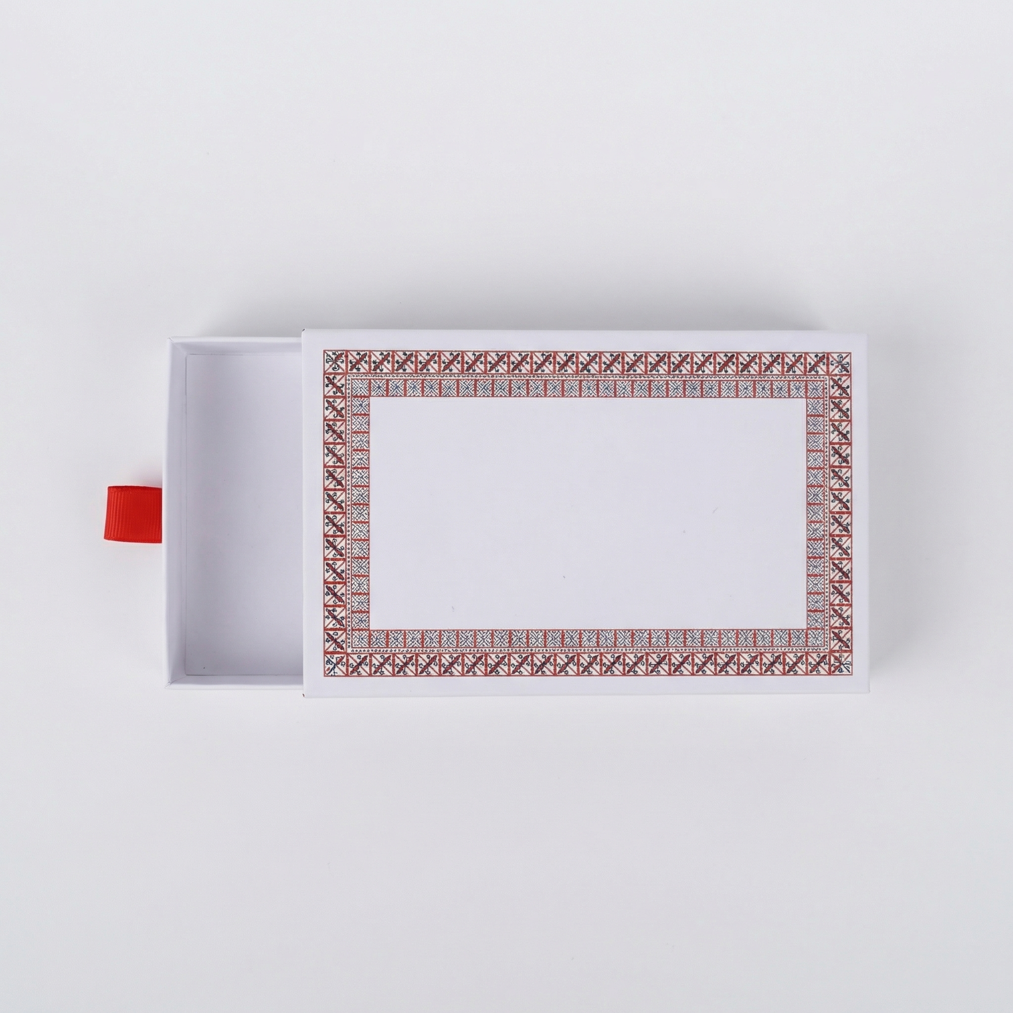 Белая коробка с красным орнаментом